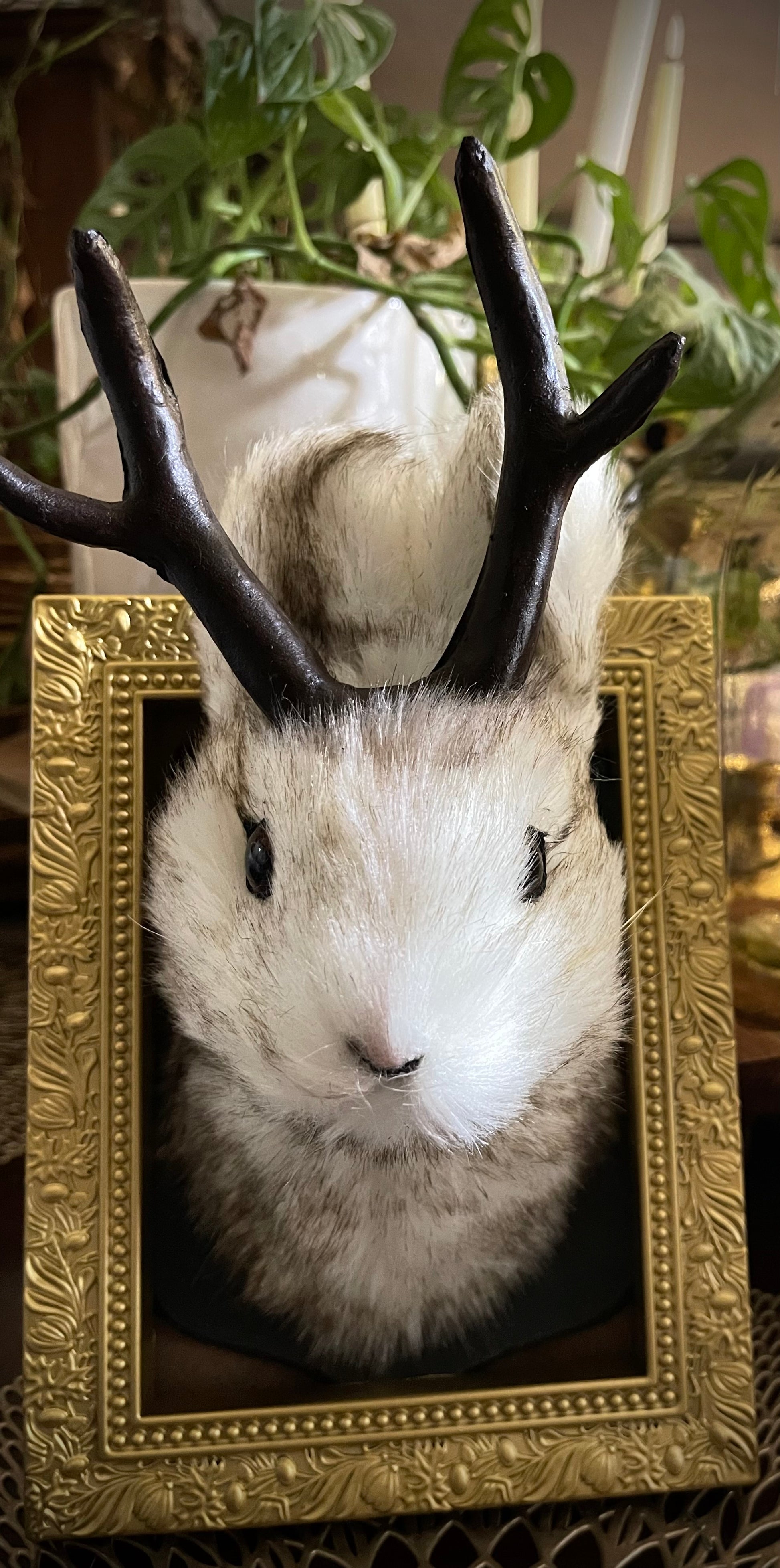 Add a whimsical touch to your decor with this enchanting framed Jackalope head! A delightful fusion of folklore and artistry, this piece captures the legendary creature in stunning detail, making it a unique conversation starter. Perfect for those who appreciate quirky decor, this Jackalope will bring a sense of magic and charm to any room. Hang it on your wall and let the spirit of the wild inspire your space!” 🦌✨
